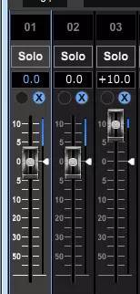 好,那当我把第三个通道的AUTO Weight自动优先级的量提高时(每个通道右边的小三角推杆可调整优先级的量),我们可见,第三个通道所分享到的增益也随着优先级量的增加而增大。